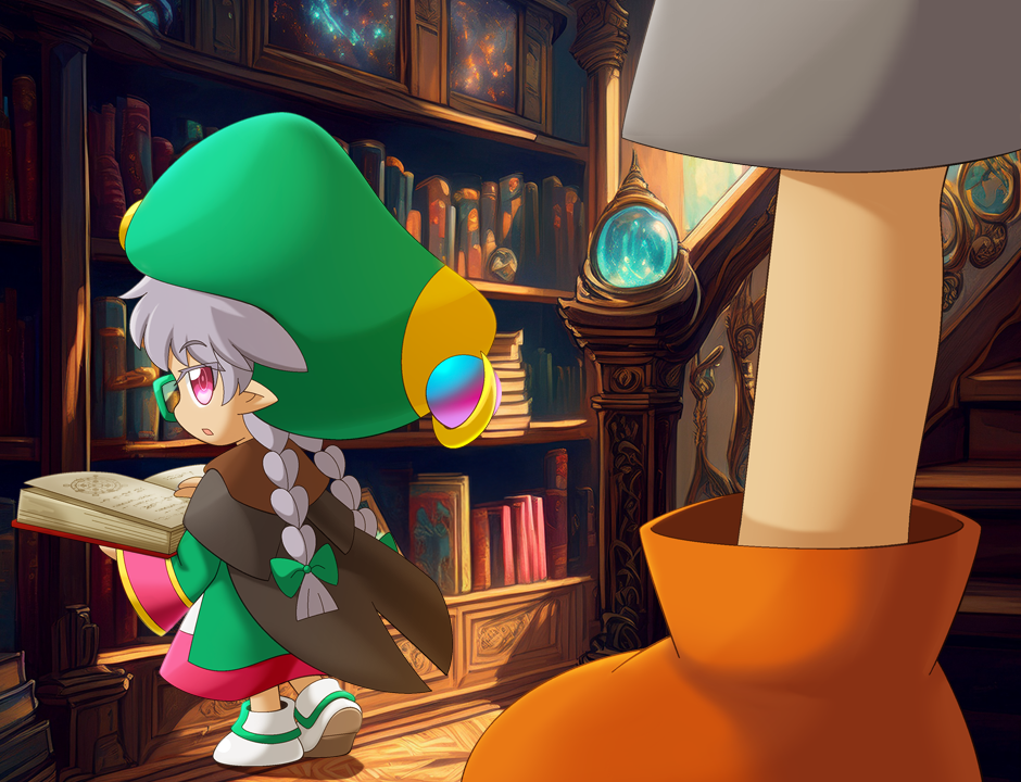 フリューゲルに住む本好きな8歳の少女アピスは、いつものように魔法図書館に足を運んで読書していると、