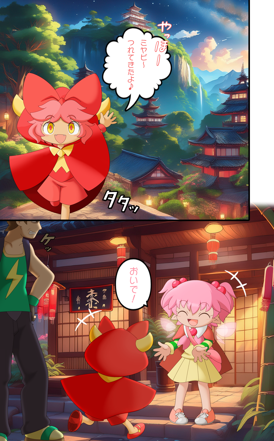 何とか仲直りした二人はミヤビちゃんに案内されて旅館の中へ入っていきました