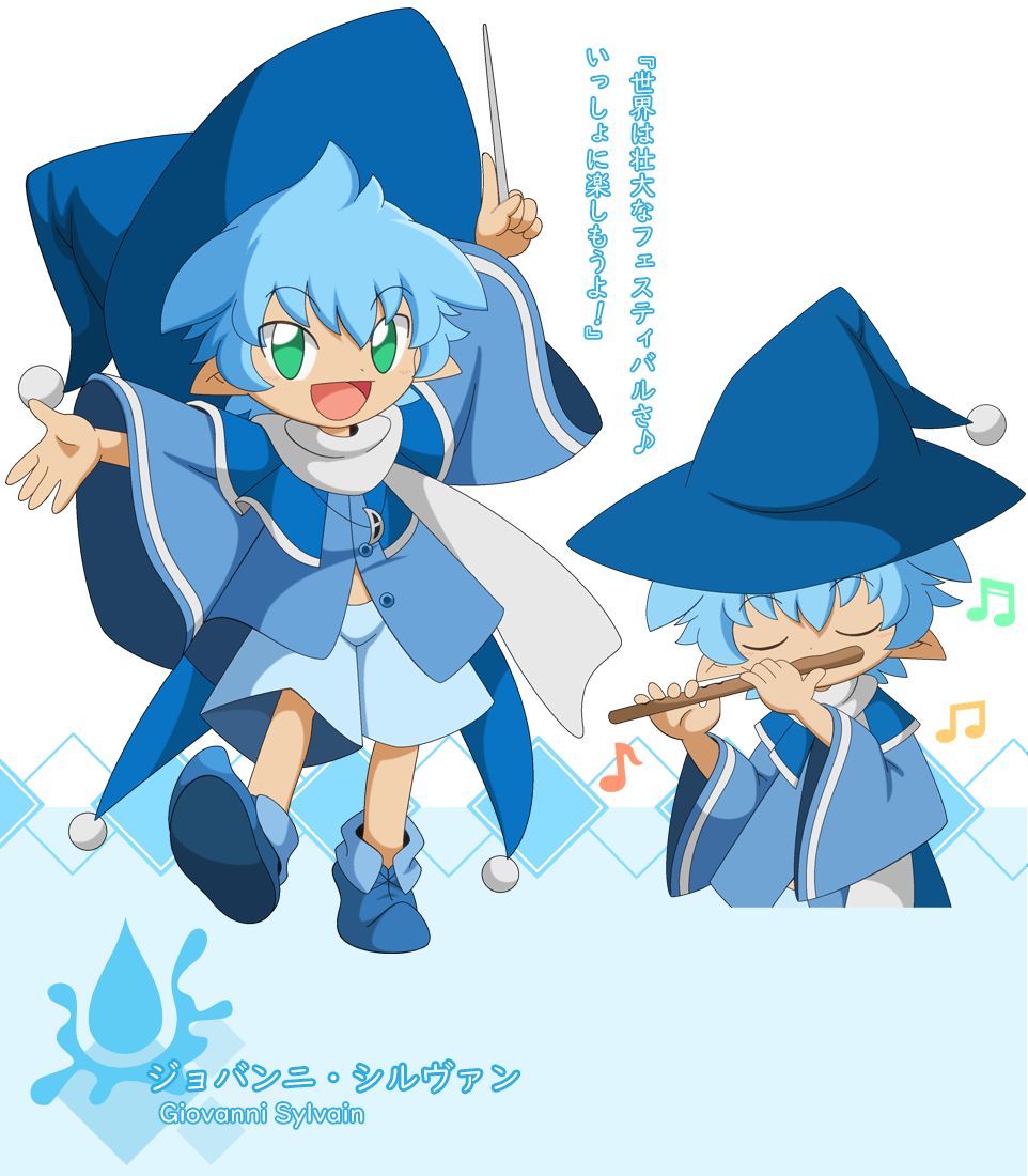 トンガリ帽子をかぶった青い髪のエルフの男の子。